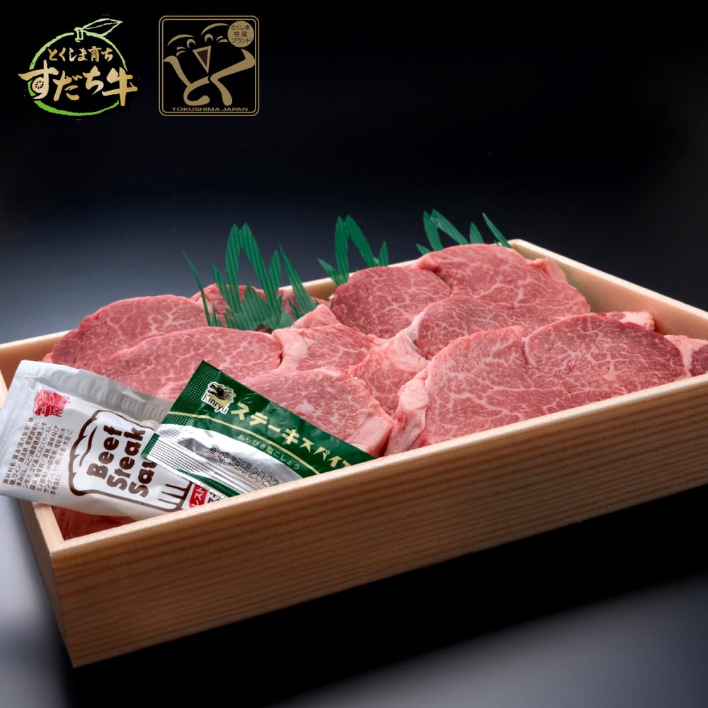 すだち牛の牛ヒレセット 1000g(1枚あたり150g程度)になります。すだち牛は雌牛の牛ヒレで柔らかく甘みも充分な赤身肉です。このセットは鳴門市のふるさと納税の返礼品と同じセットで作って提供させていただきます。牛ヒレ肉の真ん中部分のシャトウブリアンと先の部分のヘッテと後尾のミニオンの部分まで程よくセットにしていますので是非おためしください。