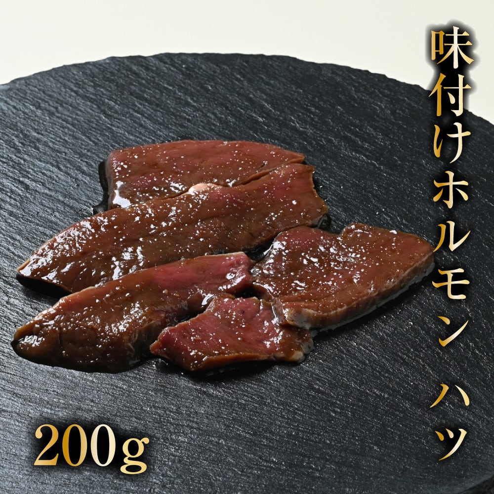 味付けホルモンのハツ(心臓)になります(真空で1パックあたり100グラムになっています)。当店が経営する焼肉店で用いています漬けダレ(醤油ベース)を漬け込んだ焼肉用のハツになります。ハツは独特の歯ごたえと、味わいがありますが栄養分がレバーなどよりも高い商品になっています。